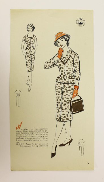 Выкройка ансамбля из искусственного шелка. 1960 - е гг. Л. Аверьянова, конструктор К. Таратынова