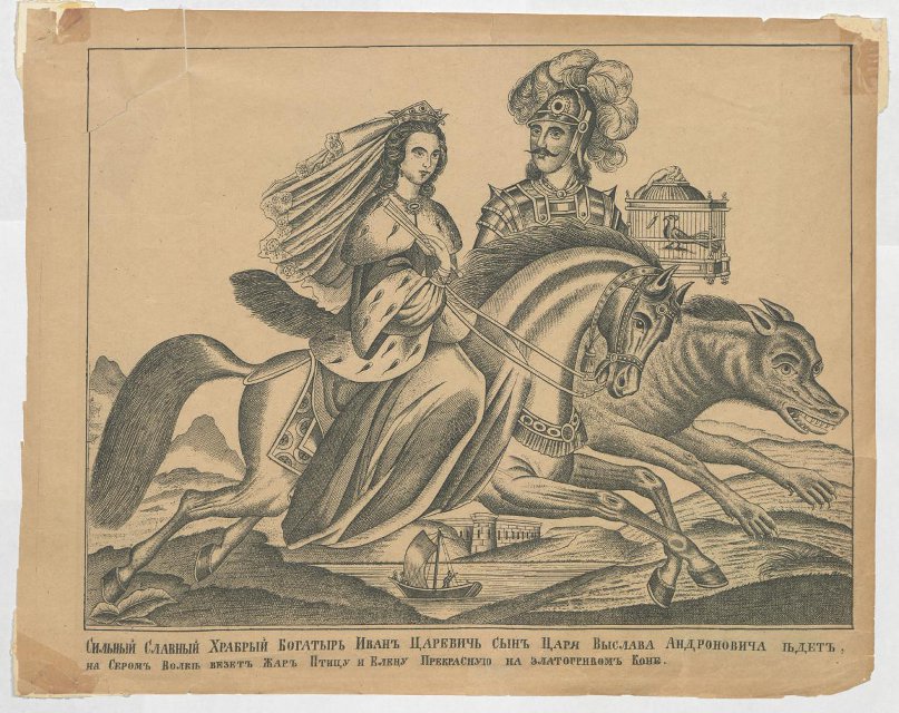 Литография. Славный Богатырь Иван-Царевич и Елена Прекрасная. Первая половина XIX века