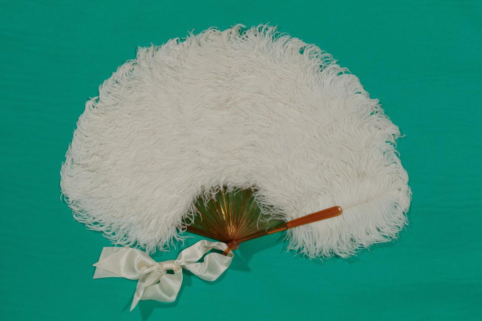 Веер pliant бальный из белых страусовых перьев. Конец XIX - начало XX века