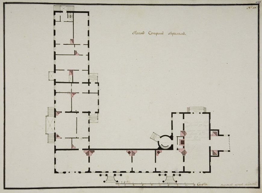 Чертеж. План Старых хором в Останкине. Фиксационный чертеж. 1795. Бизяев П.А.