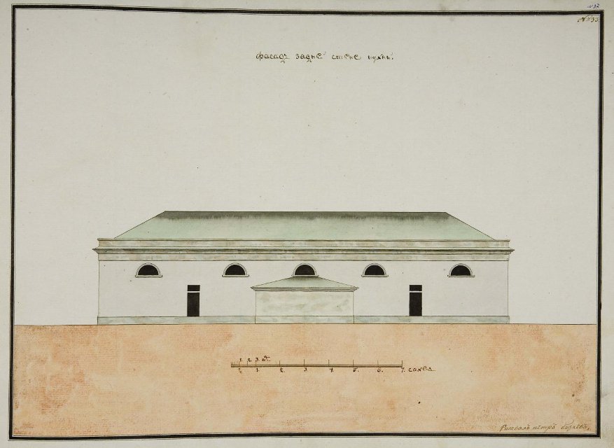 Чертеж. Западный фасад кухонного флигеля в Останкине. Фиксационный чертеж. 1794-1795. Бизяев П.А.