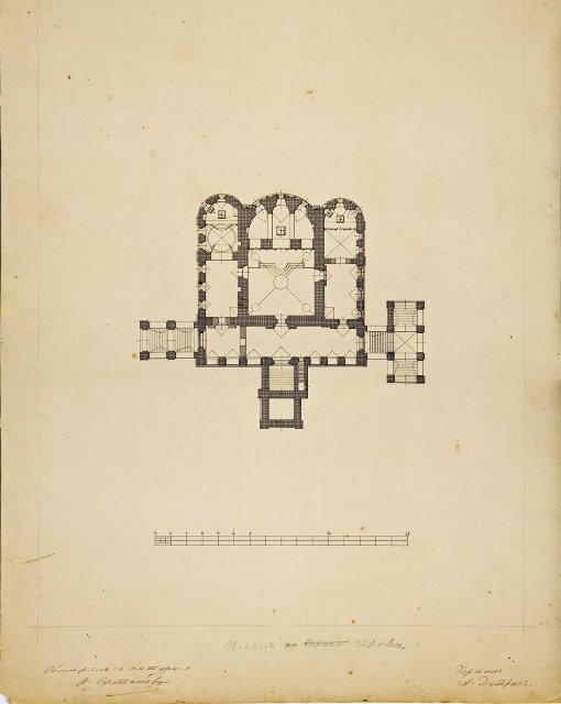 Чертеж. План храма Живоначальной Троицы в Останкине. Фиксационный чертеж. 1890-е. Султанов Н.В., Дитрих А.И.