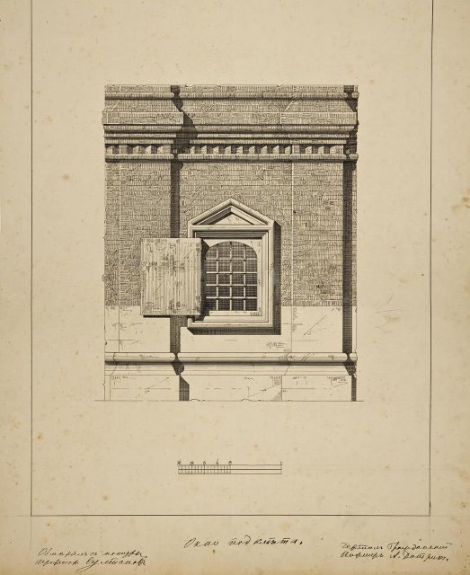 Архитектурный рисунок. Окно подклета храма Живоначальной Троицы в Останкине. 1890-е. Султанов Н.В., Дитрих А.И.