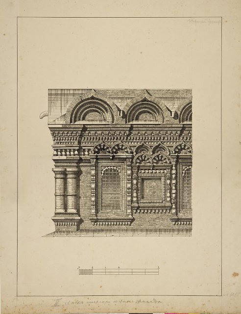 Архитектурный рисунок. Левая сторона южного фасада храма Живоначальной Троицы в Останкине. 1890-е. Султанов Н.В., Дитрих А.И.