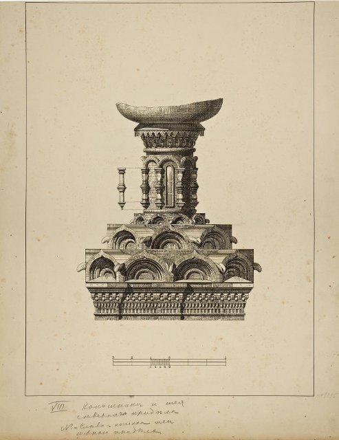 Архитектурный рисунок. Закомары и барабан северного придела храма Живоначальной Троицы в Останкине. 1890-е. Султанов Н.В., Дитрих А.И.