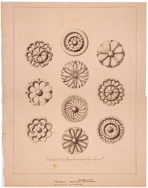 Архитектурный рисунок. Розетки среднего внутреннего портала западной галереи храма Живоначальной Троицы в Останкине. 1890-е. Султанов Н.В., Дитрих А.И.