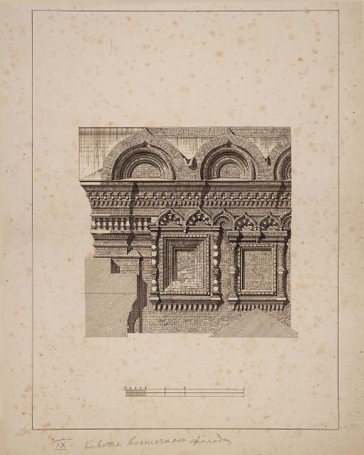 Архитектурный рисунок. Закомарные завершения восточного фасада храма Живоначальной Троицы в Останкине. 1890-е. Султанов Н.В., Дитрих А.И.