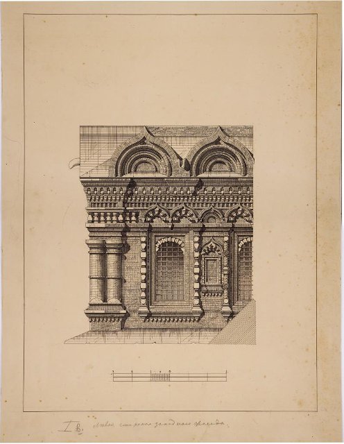 Архитектурный рисунок. Левая сторона западного фасада храма Живоначальной Троицы в Останкине. 1890-е. Султанов Н.В., Дитрих А.И.