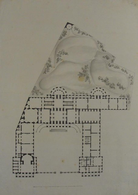 Чертеж. Проект "Большого и Красивого дома" Н.П.Шереметева на Никольской улице в Москве. План нижнего этажа. Вариант. Около 1792. Кваренги Дж.
