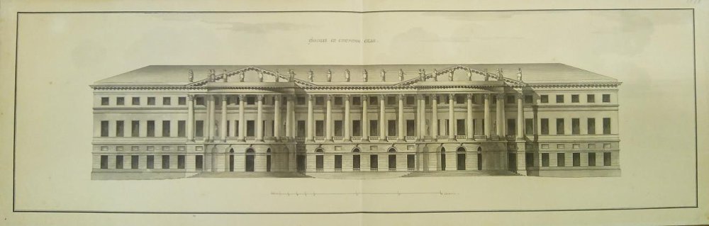 Чертеж. Проект "Большого и Красивого дома" Н.П.Шереметева на Никольской улице в Москве. Фасад со стороны сада. Около 1792. Кваренги Дж.