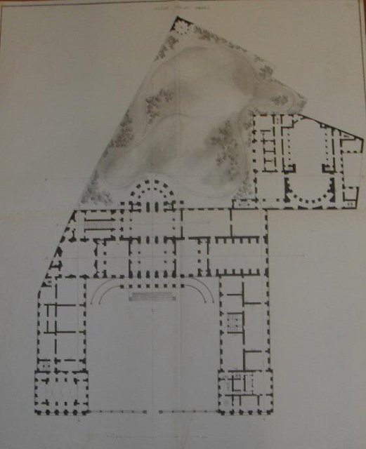 Чертеж. Проект "Большого и Красивого дома" Н.П.Шереметева на Никольской улице в Москве. План нижнего этажа. Вариант. Около 1792. Кваренги Дж.