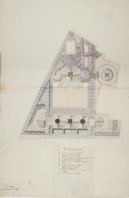 Чертеж. Проект "Большого и Красивого дома" Н.П.Шереметева на Никольской улице в Москве. План кровли. Около 1792. Депре Л.-Ж.