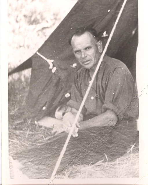 Фотография ч/б. Паустовский в Солотче, у палатки. 1937г. 1937г.