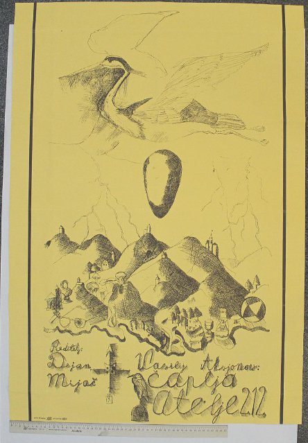 Афиша пьесы В. Аксенова «Цапля», поставленной в белградском театре «Atelje 212»: «Vasilij Aksjonov: ČAPLJA ATELJE 212. Reditelj: Dejan Mijač». Sito stampa Stojkov. 1986 г.