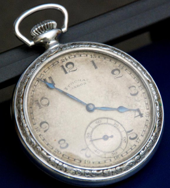 Часы мужские карманные в круглом металлическом корпусе с металлической дужкой для подвески. 1930-гг.