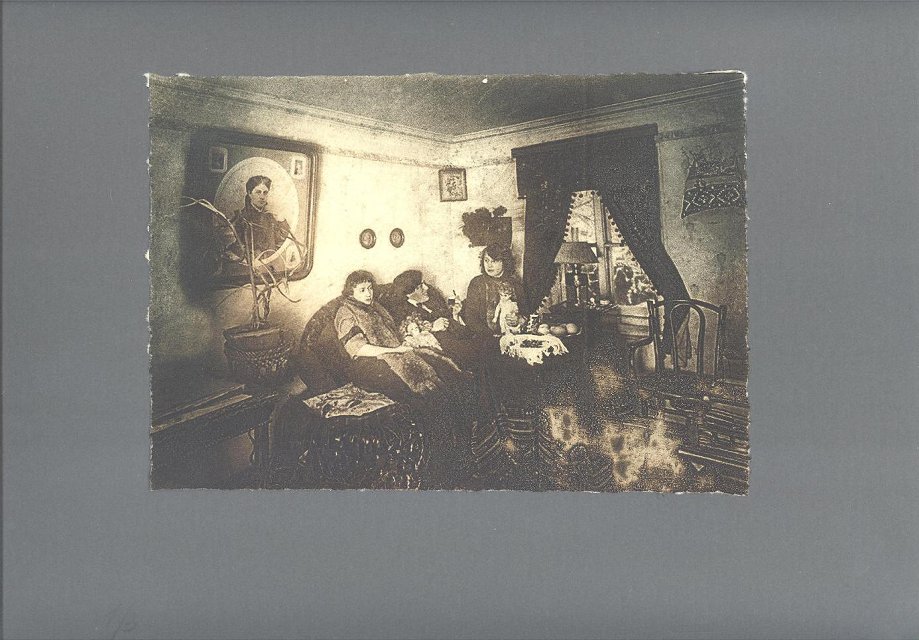 Офорт. Марина и Анастасия Цветаевы и Сергей Эфрон в гостиной дома в Трехпрудном, 1909. 2010-е гг. Ланшакова С.В.