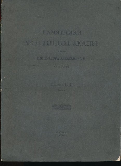 Книга. Памятники Музея изящных искусств имени Императора Александра III в Москве. - [текст] - М.: Т-во Скоропечатни А. А. Левенсон, 1912. - Вып. I-II. 1912
