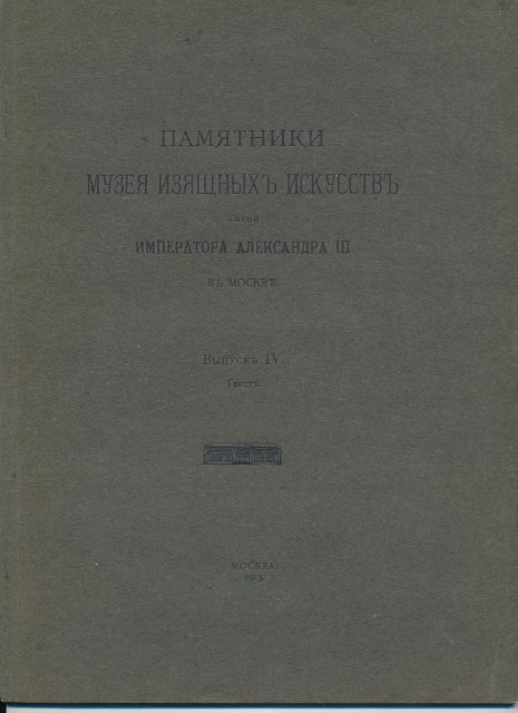 Книга. Памятники Музея Изящных искусств имени императора Александра III в Москве. - М.: [Т-во Скоропечатни А.А. Левенсон], 1913. - Вып. IV - 1913