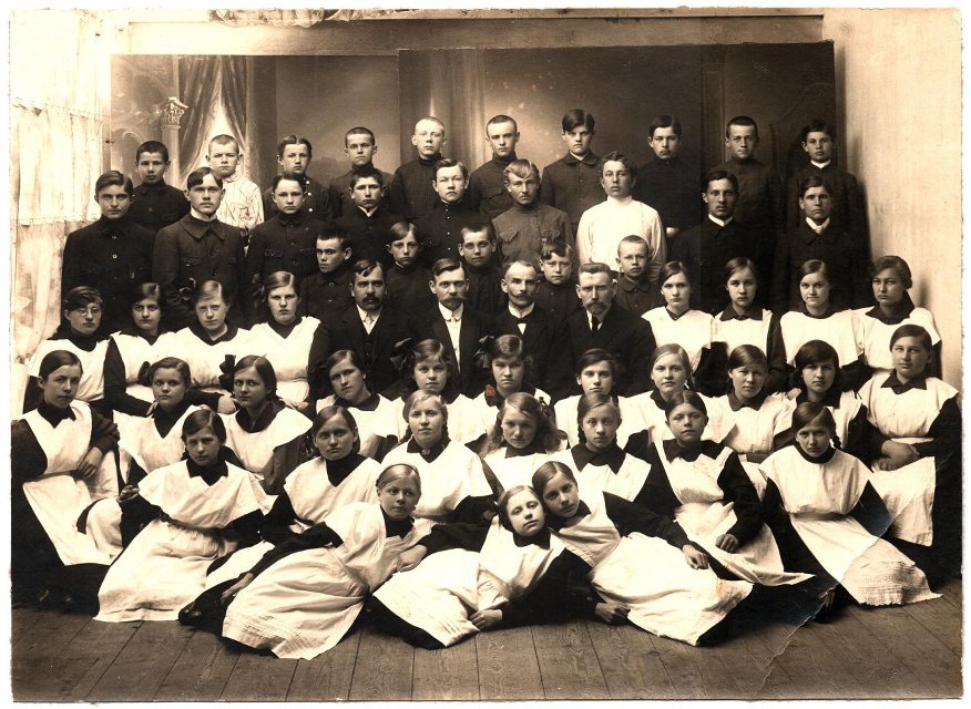 Елизавета Петровна Зиберт (в замужестве Элли Джонс) с одноклассниками и учителями. 1918. Неизвестный фотограф