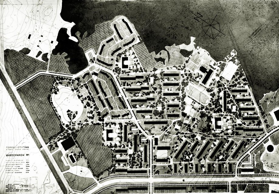 Фотография ч/б. План "Город-спутник в районе станции Крюково. Микрорайон №1". 1961
