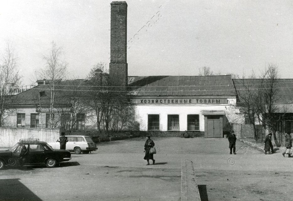 Фотография ч/б. Магазин "Хозяйственные товары" в поселке Крюково. Апрель 1994 г. 1994. Курганов Г.И.