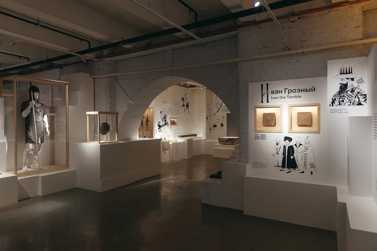 В этом разделе экспозиции собрано несколько очень интересных археологических находок. Это, например, шашки и шахматы XVI века и клад, обнаруженный в 2017 году на Пречистенке. В шахматной фигуре слона были спрятаны десять серебряных монет на сумму пять копеек. Для сравнения в то время за одну копейку можно было купить гуся. Обратите внимание и на фрагмент покрова из гробницы старшего сына Ивана Грозного — царевича Ивана Ивановича. Он был передан в музей после вскрытия саркофага в Архангельском соборе Московского Кремля в 1963 году. На ткани можно различить узор с цветами граната.