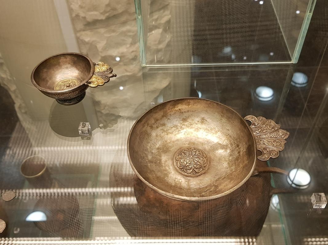 Кроме монет, клад содержал 16 серебряных сосудов: чарку, девять чаш и шесть стаканов, изготовленных как западноевропейскими мастерами, так и русскими серебряниками. Среди них выделяется серебряная чарка с гравированным, подчеркнутым позолотой, орнаментом и ручкой, оформленной в виде стилизованных птичьих голов. Кому же принадлежал этот клад? Его необычно крупный размер позволяет считать владельцем «гостя» – так называли в средневековой Руси представителей верхушки купеческого сословия. Дата сокрытия клада определяется по самой «младшей» монете, каковой является польский талер короля Владислава Сигизмундовича 1640 года. Вероятно, клад был спрятан в 40-х годах 17 века. Можно только предполагать, по каким причинам были спрятаны такие сокровища.