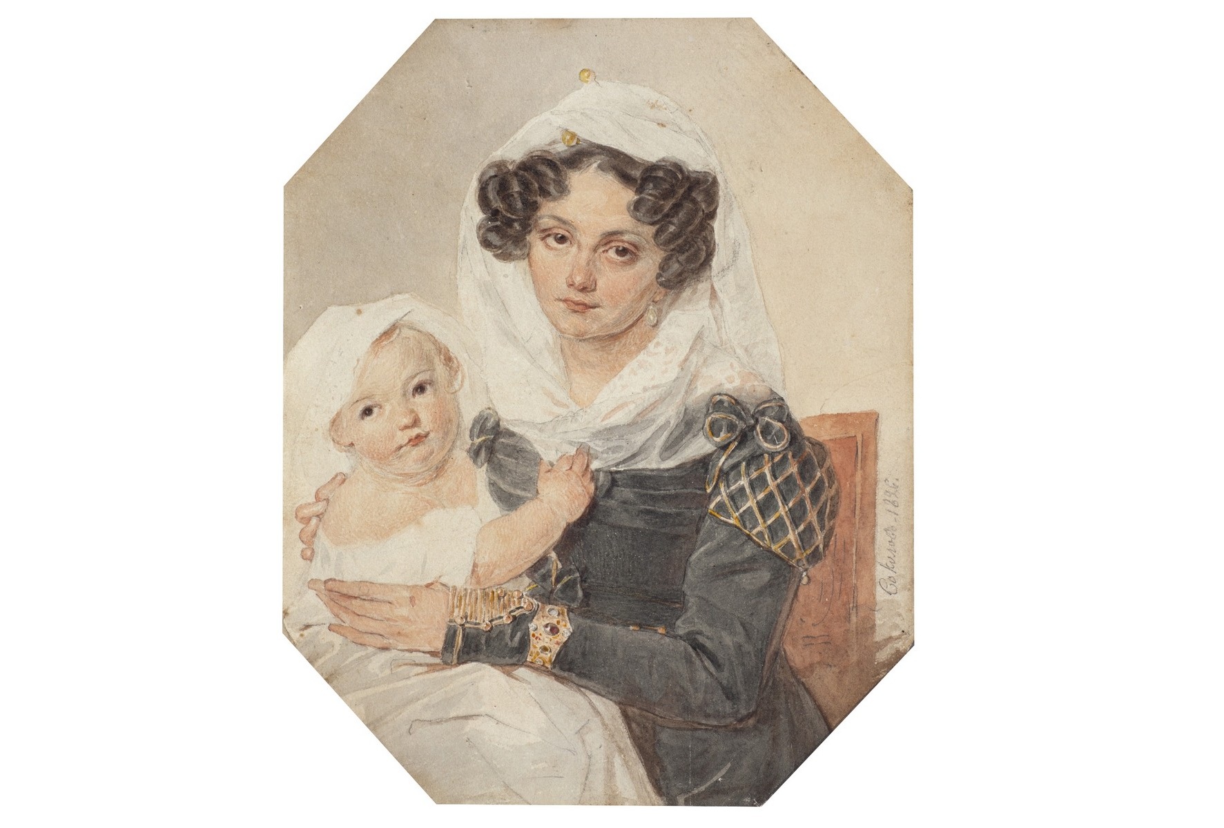 При отъезде Марии Николаевне Волконской не разрешили взять с собой ее первенца, сына Николая. Мария Николаевна заказала художнику Петру Федоровичу Соколову акварельный портрет, где она изображена с младенцем на руках. Портрет сопровождал Волконских все тридцать лет пребывания их в Сибири и служил единственным напоминанием об их первенце.