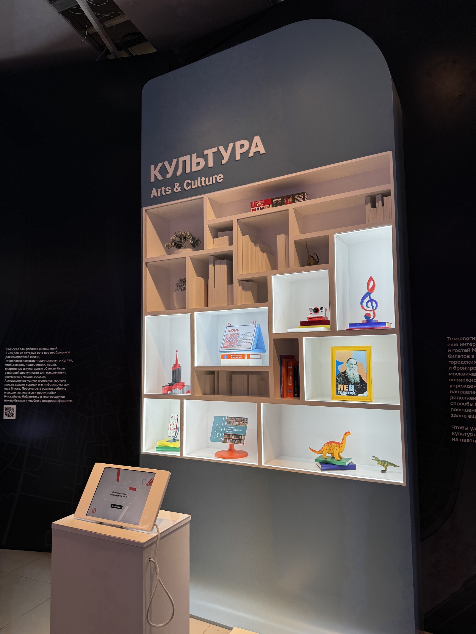 Чтобы узнать больше о сервисах в сфере «Культура», наведите планшет на цветной объект. На экране появится информация о выбранной услуге.