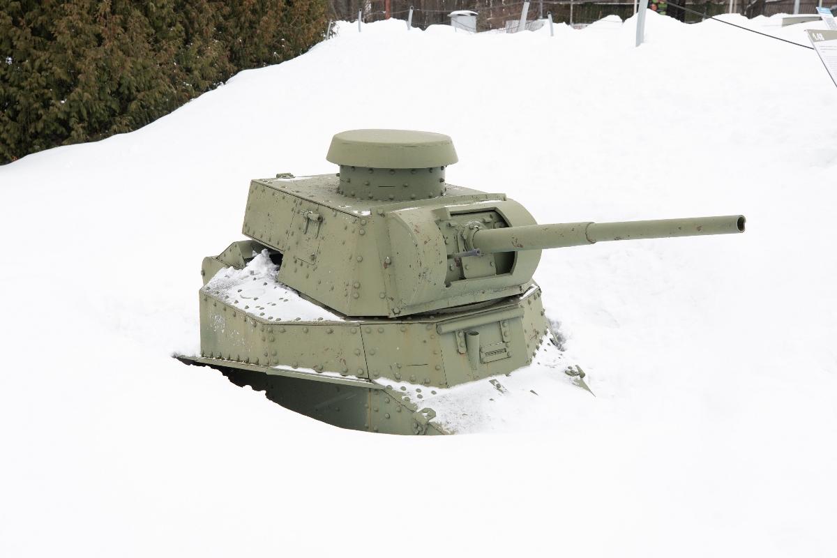 Легкий танк МС-1 (Т-18) - первый отечественный танк, поставленный на серийное производство. Его начали выпускать в 1928 году на ленинградском заводе «Большевик». Первое боевое крещение танки МС-1 получили в 1929 году в военном конфликте с Китаем на Китайско-Восточной железной дороге. В начала 1930-х годов танк МС-1 составлял основу танкового парка Красной армии, но в конце 30-х годов прошлого столетия эти танки, морально и технически устарев, были в основном сняты с вооружения. Большинство из них по распоряжению Наркома Вооружения передали укрепрайонам приграничных округов для превращения в неподвижные огневые точки. Превращенные в ДОТы танки МС-1 были в основном сосредоточены на западных границах СССР, некоторое их количество было также установлено в системе укреплений в районе озера Хасан, где в 1938 году проходили боевые действия с Японией. В незначительном количестве МС-1 еще оставались в войсках в боеспособном состоянии к началу Великой Отечественной войны и использовались на ее начальном этапе. Последний из известных фактов участия в боях МС-1 относится к битве за Москву, когда осенью 1941 года в составе 150-й танковой бригады использовались 9 танков МС-1.