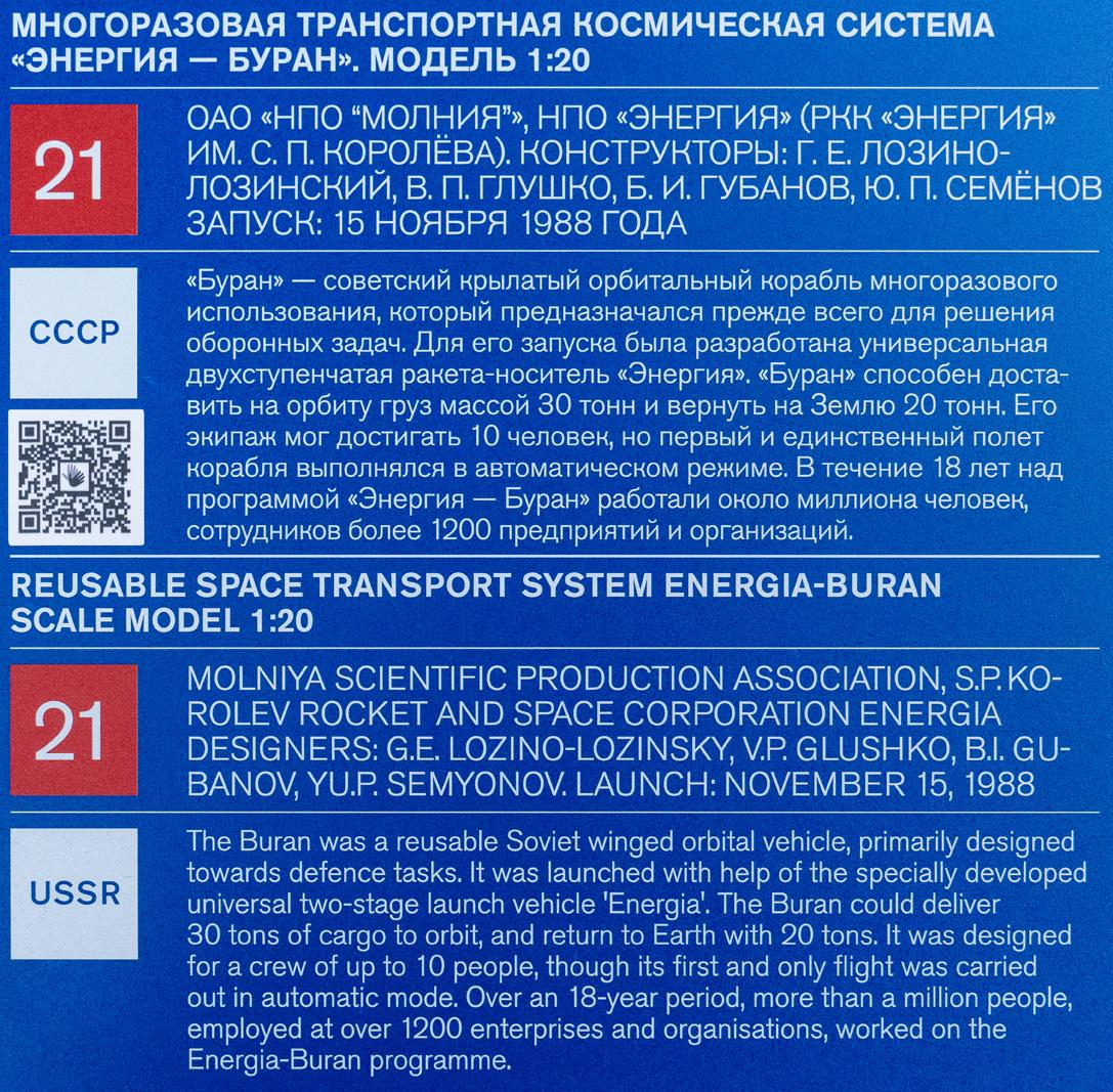 Многоразовая космическая система «Энергия-Буран». Первый и единственный полет «Бурана» состоялся 15 ноября 1988 года. Ракета носитель «Энергия» вывела на орбиту многоразовый корабль «Буран». Два раза обогнув Землю «Буран» совершил посадку в автоматическом режиме.