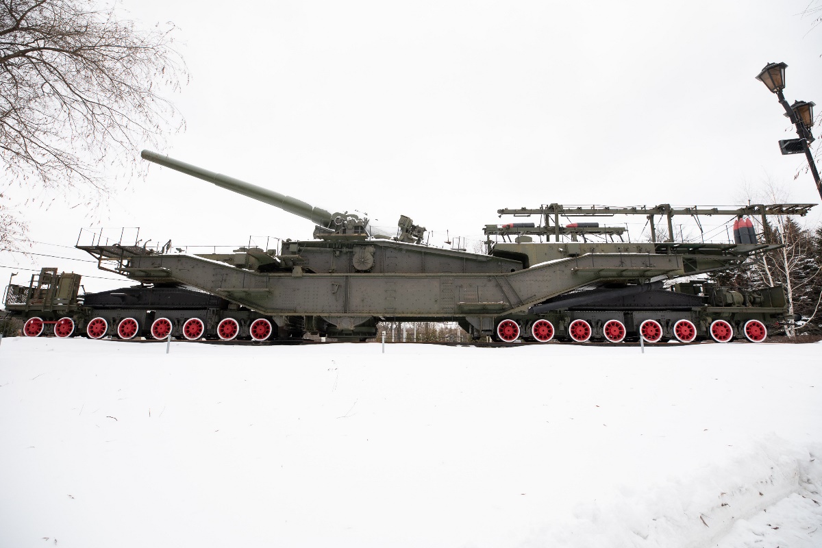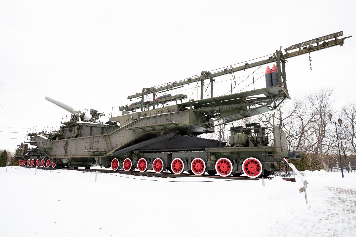 Один из самых легендарных экспонатов - советская сверхтяжелая железнодорожная артиллерийская установка ТМ-3-12. Ее еще нередко называют сухопутным линкором и Царь-пушкой № 2. А военнослужащие уважительно и ласково расшифровывали аббревиатуру «ТМ» как «Татьяна Михайловна». Размеры этой установки впечатляют - 40 метров длиной, калибр орудия – 305 мм, длина ствола – 15 метров, масса в боевом положении – 340 тонн. Несмотря на свои размеры ТМ-3-12 могла легко передвигаться на паровозной тяге по большей части железных дорог СССР. Активная разработка в СССР подобных железнодорожных артиллерийских систем велась в 1920–1930-х годах. Всего было изготовлено три установки ТМ-3-12. Кстати, их оснастили поднятыми со дна Черного моря механизмами с башен линкора «Императрица Мария», затонувшего в 1916 году в Севастополе в результате взрыва. Сами орудия, изготовленные для строящихся линкоров серии «Измаил», были взяты со складов, где они оставались еще с дореволюционных времен.