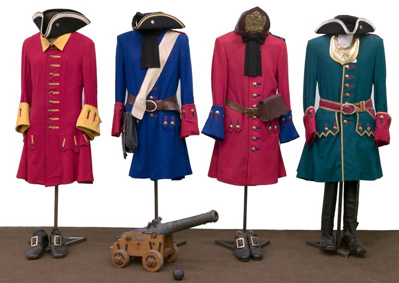 В данной витрине представлены реконструкции формы служащих Лефортовского, Семёновского и Преображенского полков, базировавшихся в Лефортово и поблизости. Крайний справа мундир даёт представление о форме бомбардира Преображенского полка. В таком мундире под именем Петра Михайлова царь Пётр I отправился в Великое посольство.