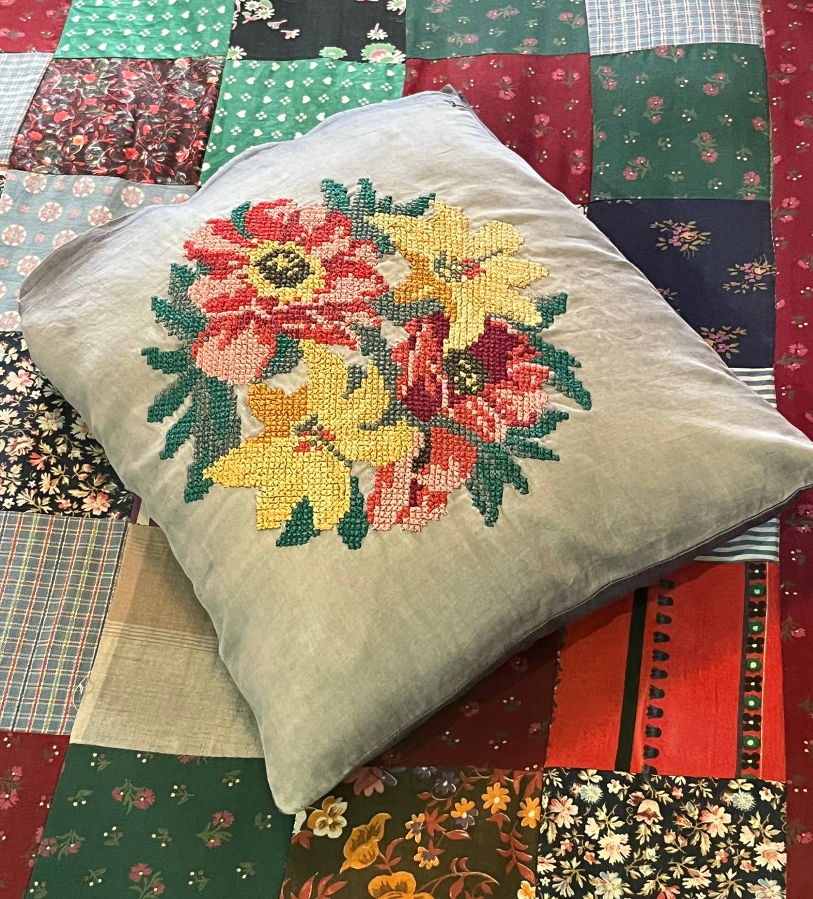Наволочку лежащей на кровати подушки-думочки украшала вышивкой мать поэта, Татьяна Федоровна Есенина, в девичестве Титова, умелая рукодельница. Младшая сестра Сергея Есенина, Александра, вспоминала о ней: «Наша мать была единственной девочкой в доме Титовых и поэтому была любимицей. Она была стройна, красива, лучшая песенница на селе, играла на гармони, умела организовать веселую игру.