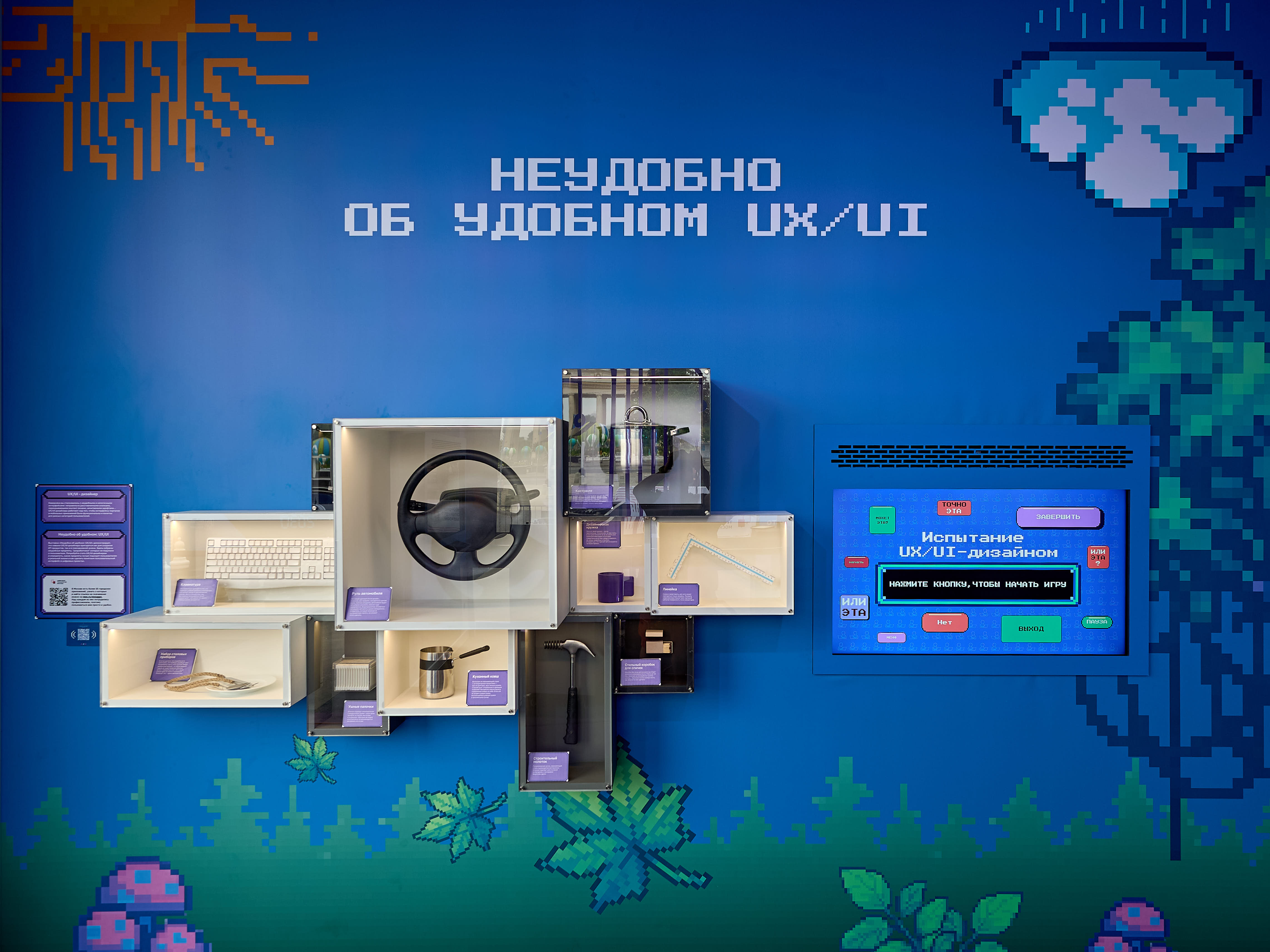 Выставка «Неудобно об удобном: UX/Ul» демонстрирует, что навыки UX/Ul-дизайнера пригодятся как для создания ИТ-продуктов, так и в повседневной жизни. Здесь собраны неудобные предметы, "разработчики" которых не подумали о пользователе. Попробуйте стать UX/UI-дизайнером и определить, какие предметы лучше подходят пользователям в реальной жизни и как сделать понятным пользовательский интерфейс в цифровых проектах.
