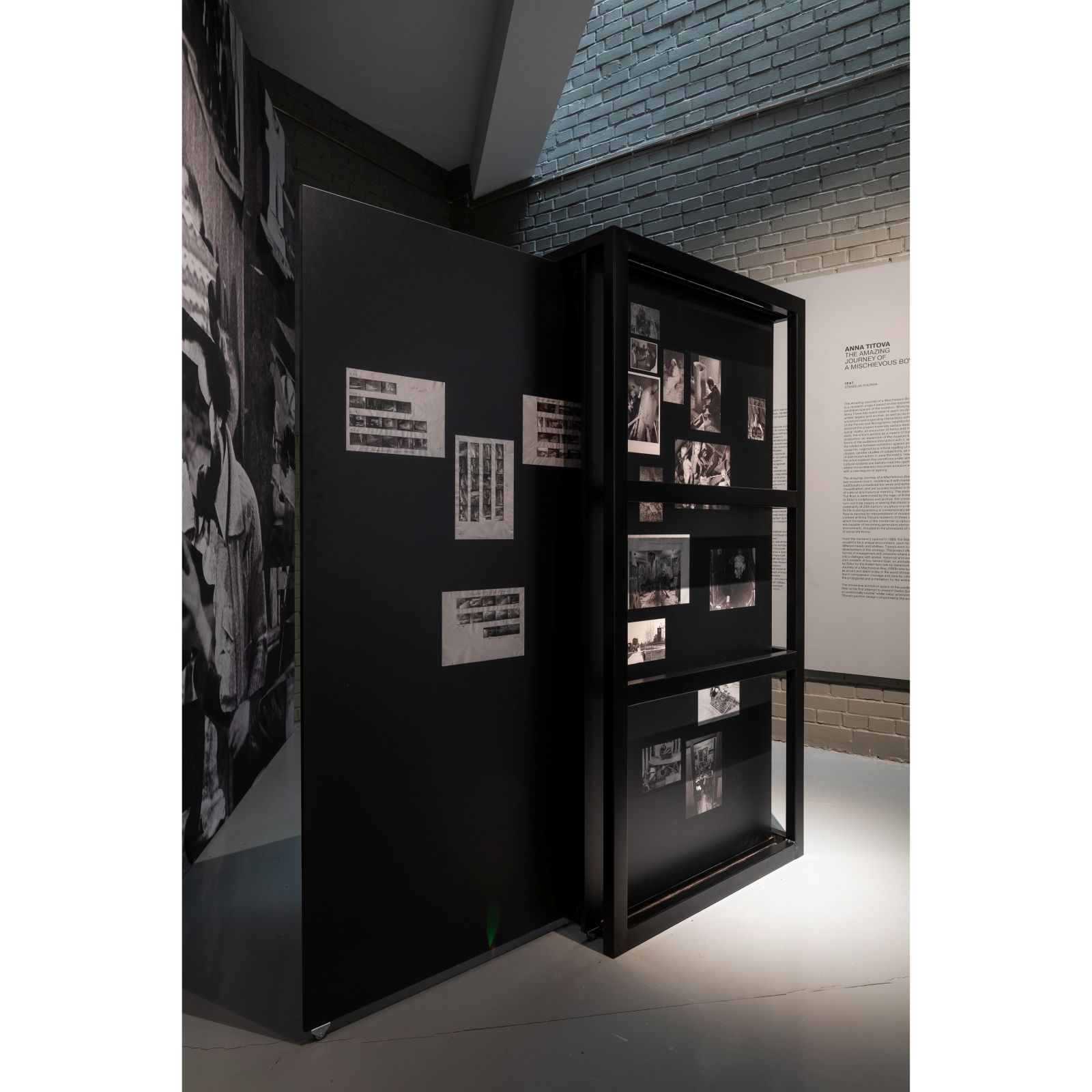 Стоит сказать, что на родине Сидур придерживался обособленной позиции, дистанцируясь от основных художественных сообществ. Лишь в 1983 году состоялась его непосредственная встреча с представителями нонконформистского искусства – художниками Немухиным, Кабаковым, Янкилевским и другими – когда впервые за тридцать лет восемь линогравюр художника были показаны на официально разрешенной групповой выставке в Московском Горкоме графиков на Малой Грузинской улице. Эти знакомства носили сдержанный характер: из всего круга только с Ильей Кабаковым Сидур обменялся визитами в мастерские. На снимке в верхнем правом углу запечатлено посещение Сидуром мастерской Кабакова. Стоит добавить, что мастерские советских художников зачастую располагались в подвальных или чердачных помещениях, освободившихся в результате масштабной хрущевской застройки. И если гости мастерской Кабакова вспоминали, лестницу наверх, то посетители Сидура преодолевали 17 ступенек вниз, в его Подвал.