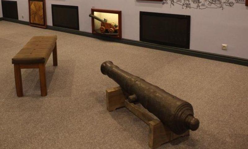 В центре первого зала находится 6-фунтовая артиллерийская пушка, отлитая в России в самом начале XVIII века.