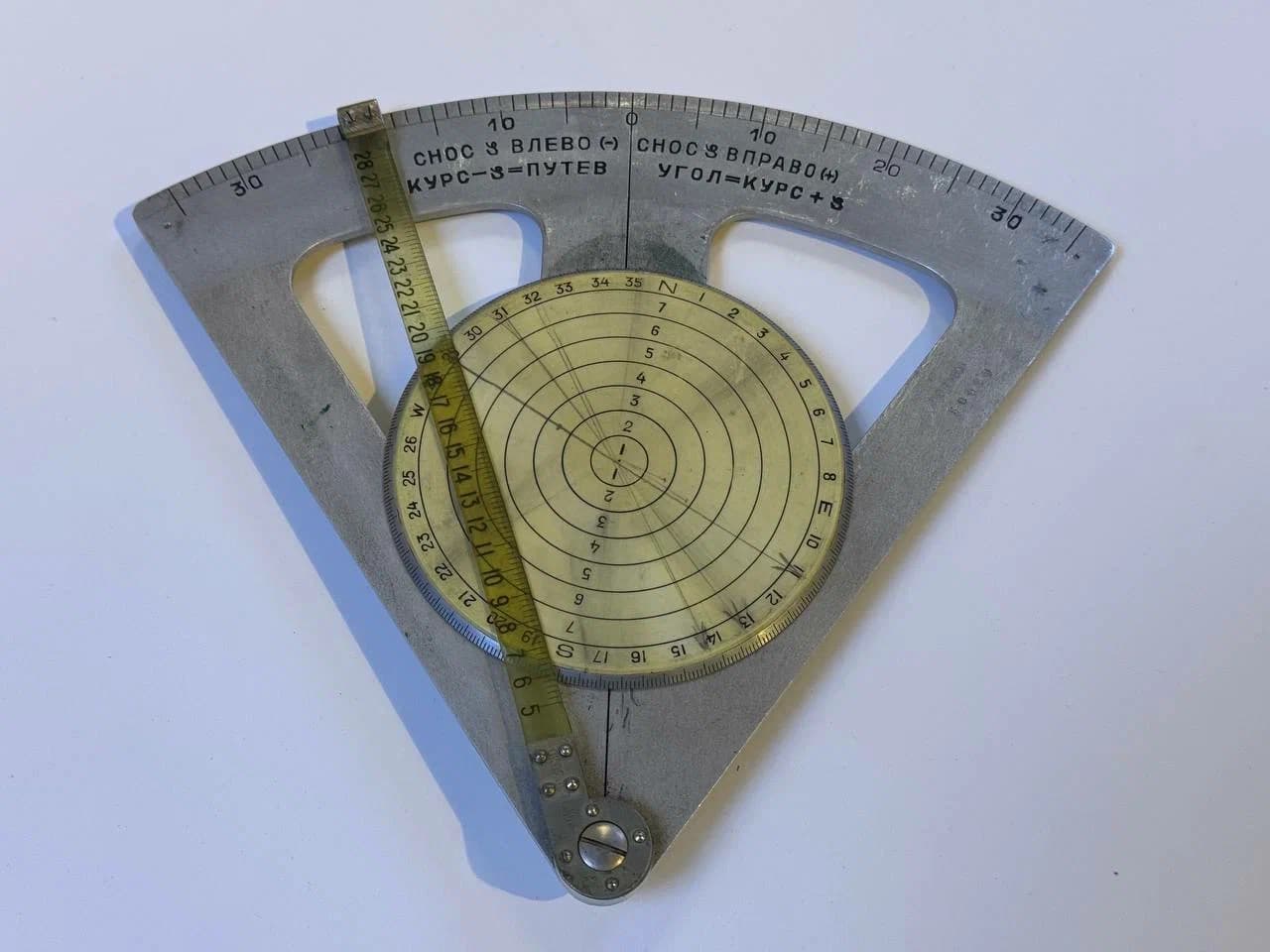 Важным прибором летчика в период развития авиации в довоенные годы был ветрочет. С его помощью можно было определить влияние ветра на курс и скорость самолета. Ветрочет мог использоваться штурманами на этапе подготовки к полету для расчета маршрута и необходимого количества топлива, а также во время самого полета для определения скорости и угла сноса ветром. Рассчитанные цифры позволяли внести необходимые поправки в курс и скорость самолета. Со временем на смену ветрочету пришли навигационные расчетчики, и сейчас его можно увидеть, пожалуй, только в музеях. Так, перед вами среди других предметов экипировки пилота представлен ветрочет летчицы Зайцевой Зинаиды Васильевны. Ветрочеты такого типа (треугольник учета бокового ветра) зачастую назывались ветрочетом Журавченко, в честь создателя этого прибора.