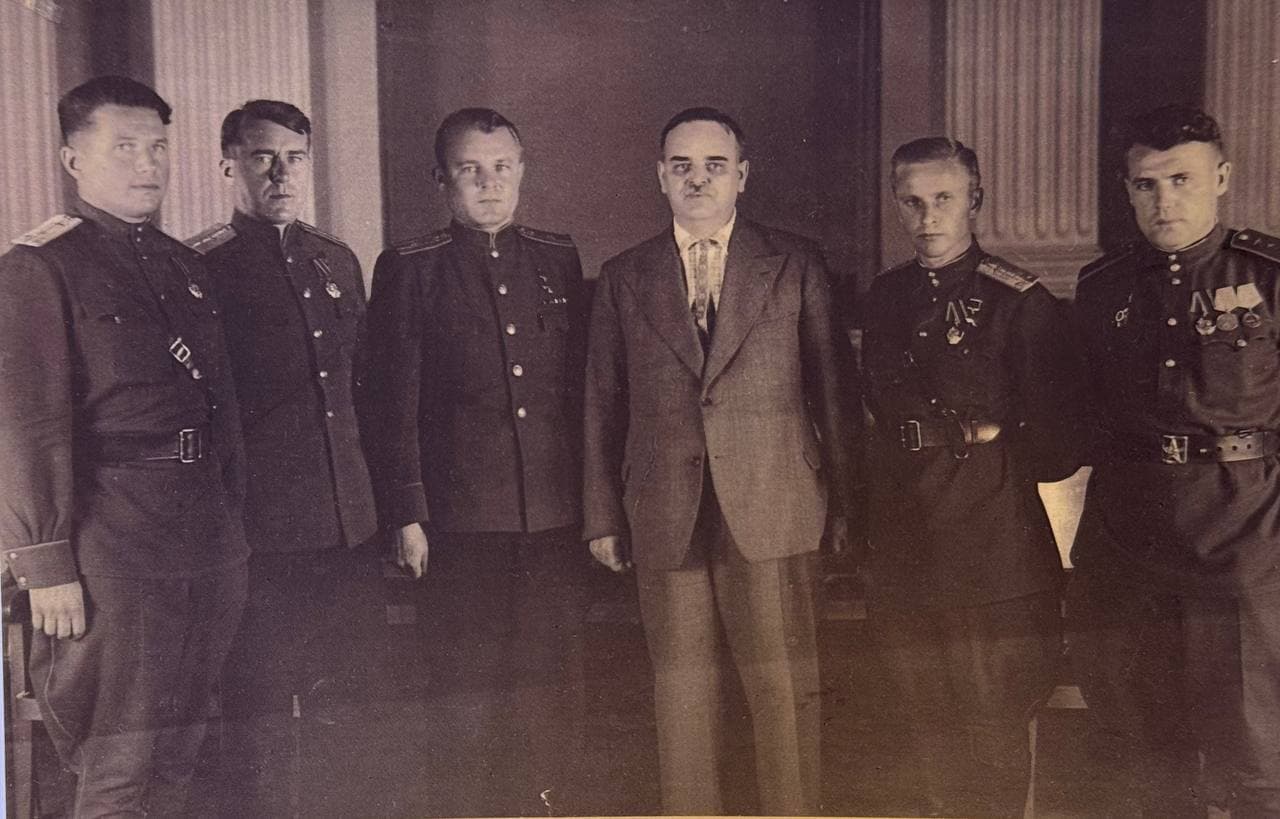 Фотография. Экипаж командира корабля Героя Советского Союза, Народного героя Югославии А.С. Шорникова на награждении в Кремле. 1944 г.