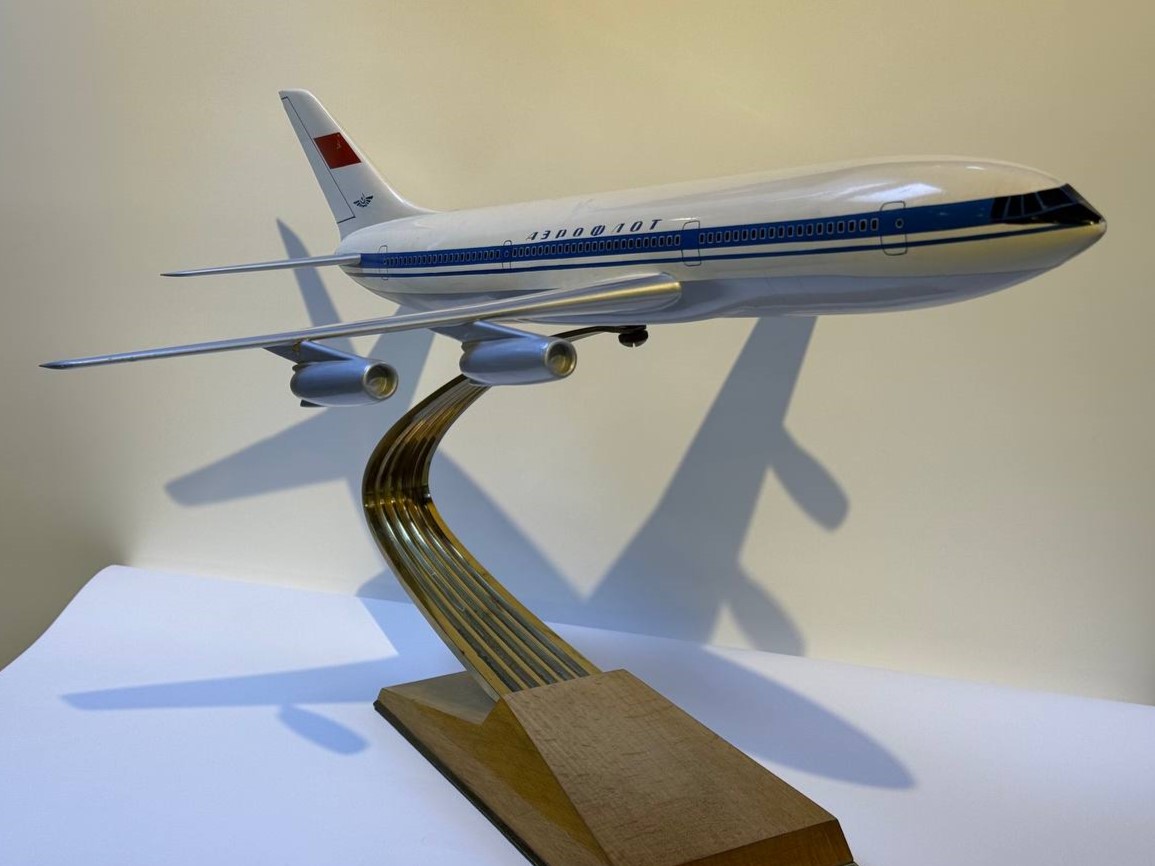 Уже в 1943 году ОКБ Ильюшина приступило к разработке пассажирских самолетов. Серия гражданских «Илов» началась с Ил-12. За ним последовали Ил-14, Ил-18. Последним самолётом, разработанным под руководством Сергея Владимировича, стал Ил-62 – флагман Аэрофлота 1960-х – 1970-х годов. Ил-62, модель которого представлена в витрине, — первый советский дальнемагистральный реактивный лайнер, введенный в эксплуатацию в 1967 году. Он перевозил до 186 пассажиров на расстояния до 9200 км, использовался как правительственный борт № 1, поскольку считался одним из самых комфортных самолетов своего времени.