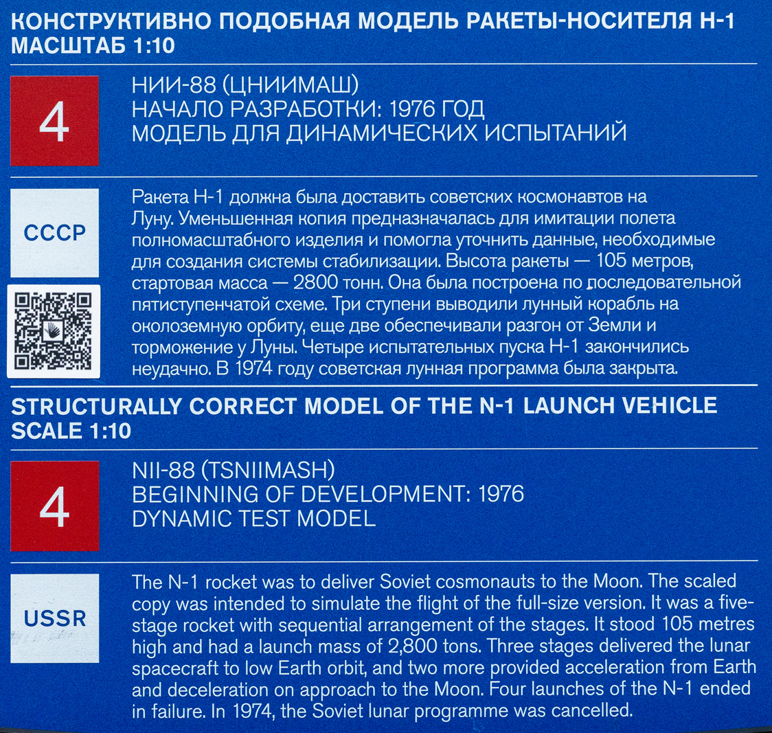 Ракета Н-1 должна была доставить советских космонавтов на Луну. Четыре испытательных пуска Н-1 закончились неудачно. В 1974 году советская лунная программа была закрыта.
