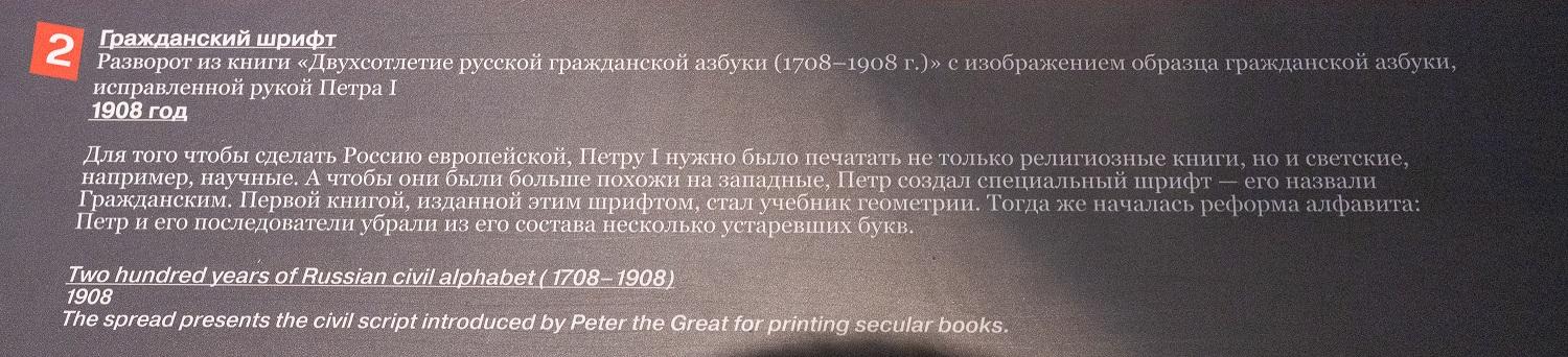 Для того, чтобы сделать Россию европейской, Петру I нужно было печатать не только религиозные книги, но и светские — например, научные. А чтобы они были больше похожи на западные, Петр создал специальный шрифт — его назвали Гражданским. Первой книгой, изданной этим шрифтом, стал учебник геометрии. Тогда же началась реформа алфавита: Петр и его последователи убрали из его состава несколько устаревших букв.