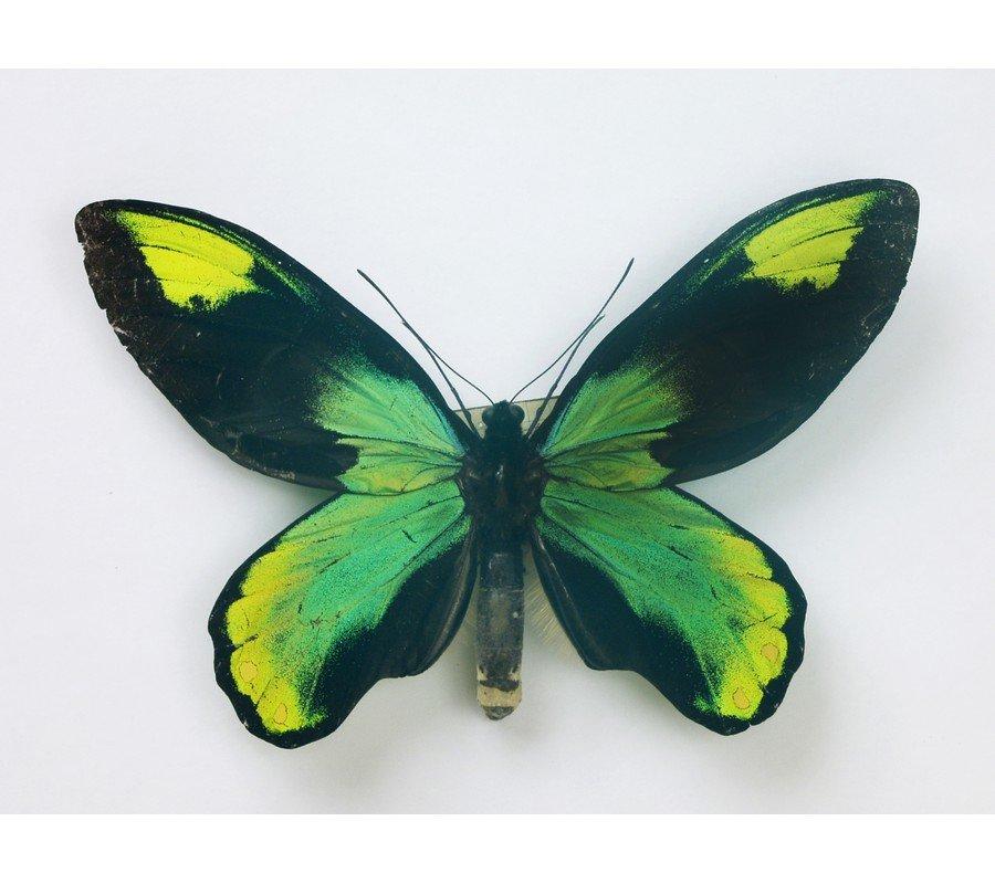 Бабочка Птицекрылка королевы Виктории (Ornithoptera victoriae Gray, 1856, ssp. gabrielli Le Moult, 1911).