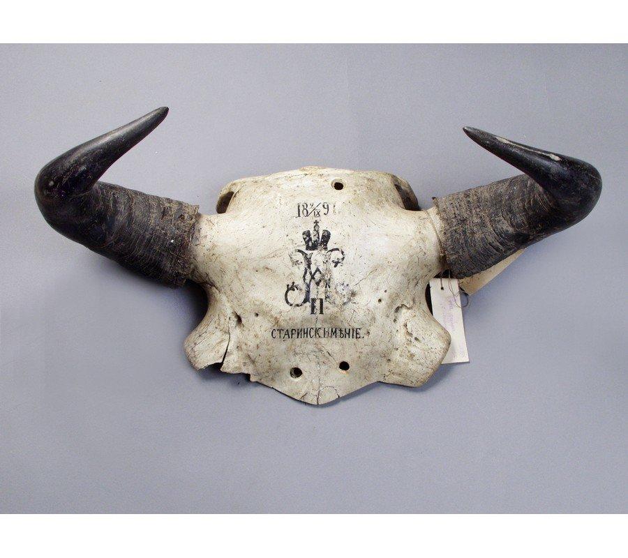Трофей царской охоты. Данный экземпляр добыт последним российским императором Николаем II во время охоты на территории Старинского имения Беловежской Пущи (территория Белоруссии) 2 сентября 1897 г.