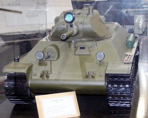 Модель первого варианта серийной «Тридцатьчетвёрки» (1940 год). Экспонат подарен музею харьковскими танкостроителями (Государственное предприятие «Завод имени Малышева», Украина) 6 декабря 2001 года.