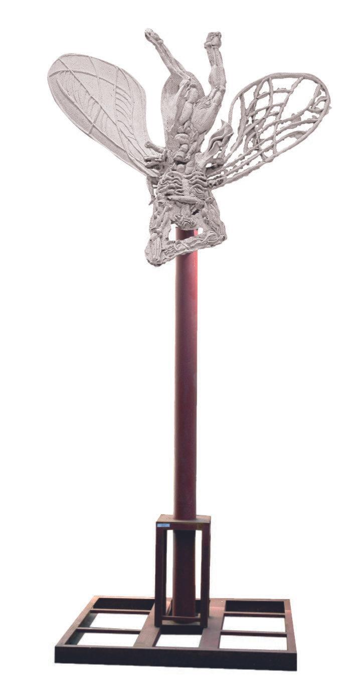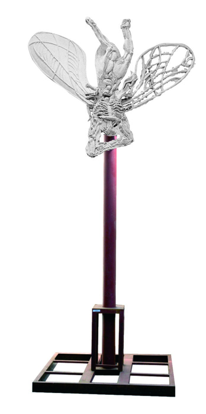 Обугленное тело падающего человека в цепких лапках гигантской мухи – символ трагических катастроф – падений, сопровождающих путь человечества к небесным высотам: