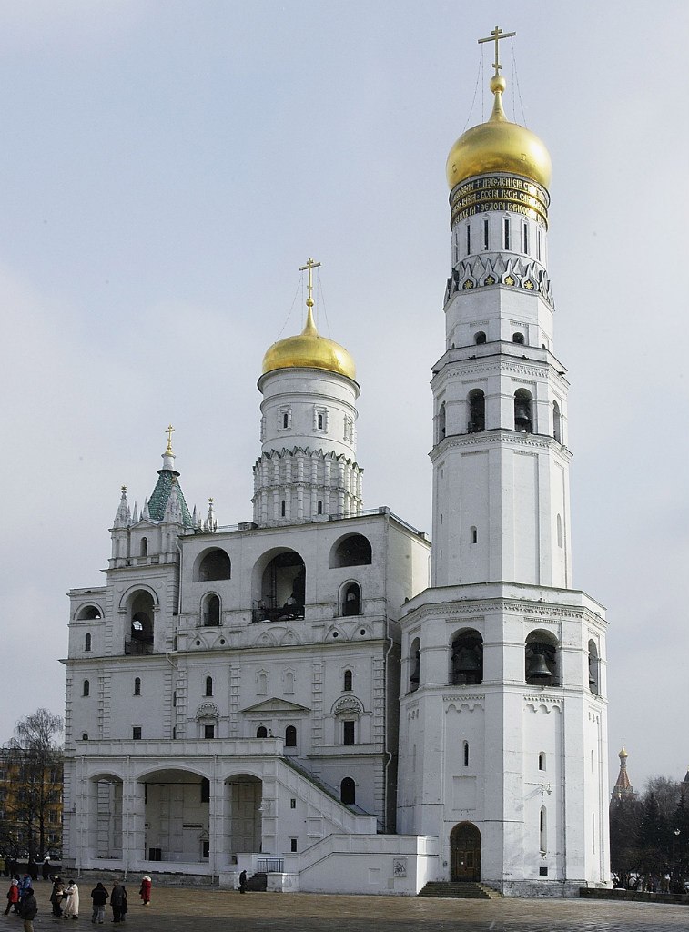 Ансамбль колокольни «Иван Великий», расположенный на границе между Соборной и Ивановской площадями, является композиционным центром Кремля. Он создавался на протяжении трех с лишним веков - с 1505 г. по 1815 г. и состоит из трех разновременных объектов: столпа колокольни Ивана Великого, Успенской звонницы и Филаретовой пристройки.