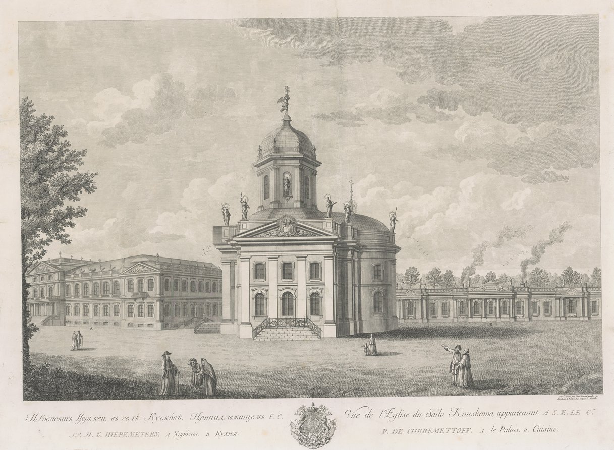 "Проспект Церкви, в селе Кускове, принадлежащемъ Е. С. Гр. П. Б. Шереметеву".