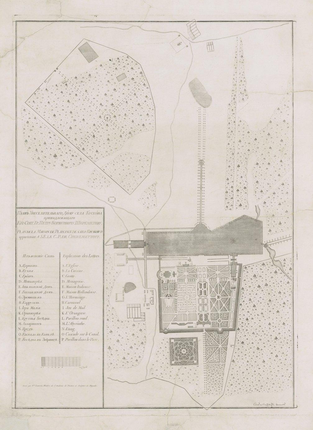 "План увесилительного дома села Кускова принадлежащего Его Сiят.Гр.Петру Борисовичу Шереметеву".