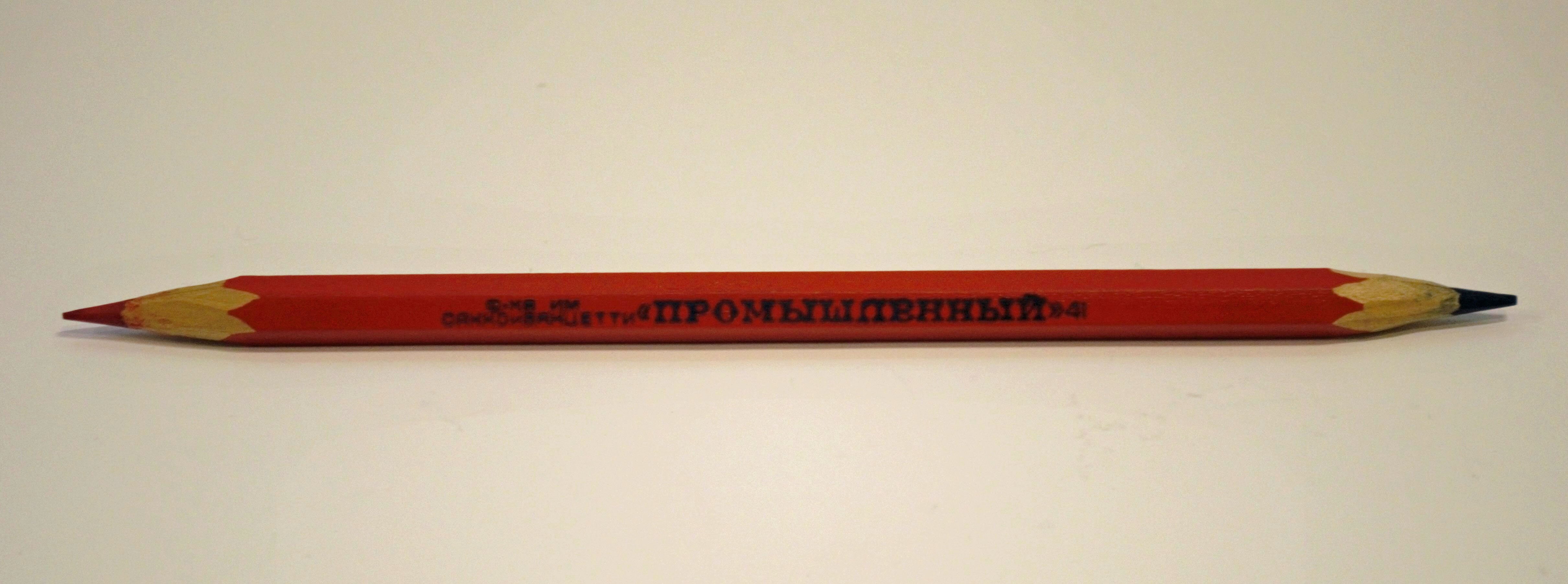 Карандаш двусторонний. Хранился в ящиках рабочего стола Лосева. Такими карандашами он работал в 1930-1940-е годы.